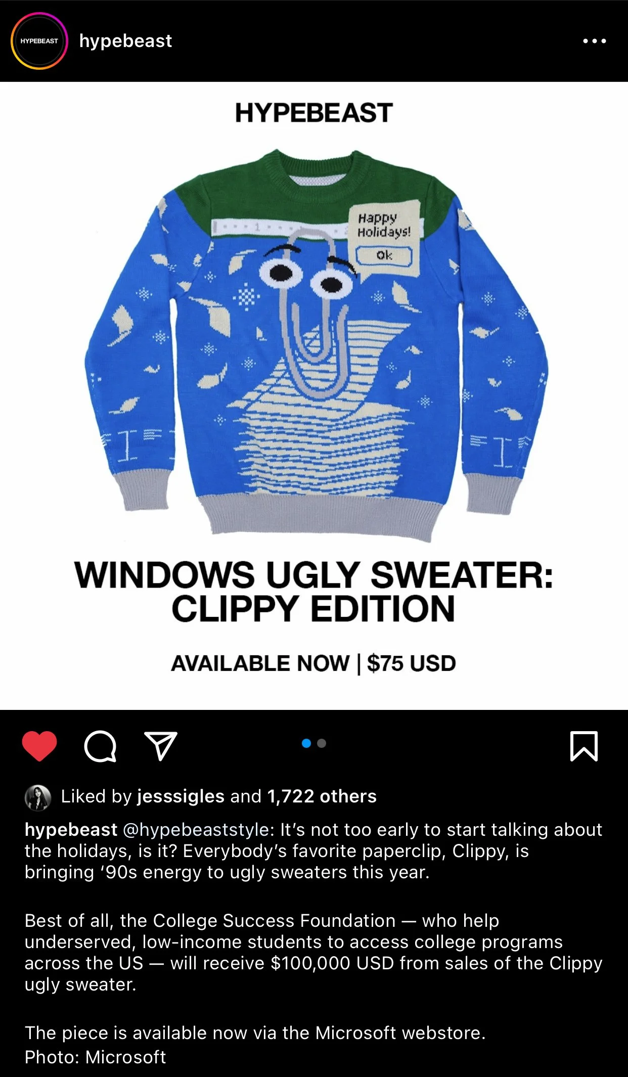 For the fifth installment, we featured the one and only, Clippy. My only charge this time around was the sweater design, but it made waves, including a shout-out from Melinda Gates.